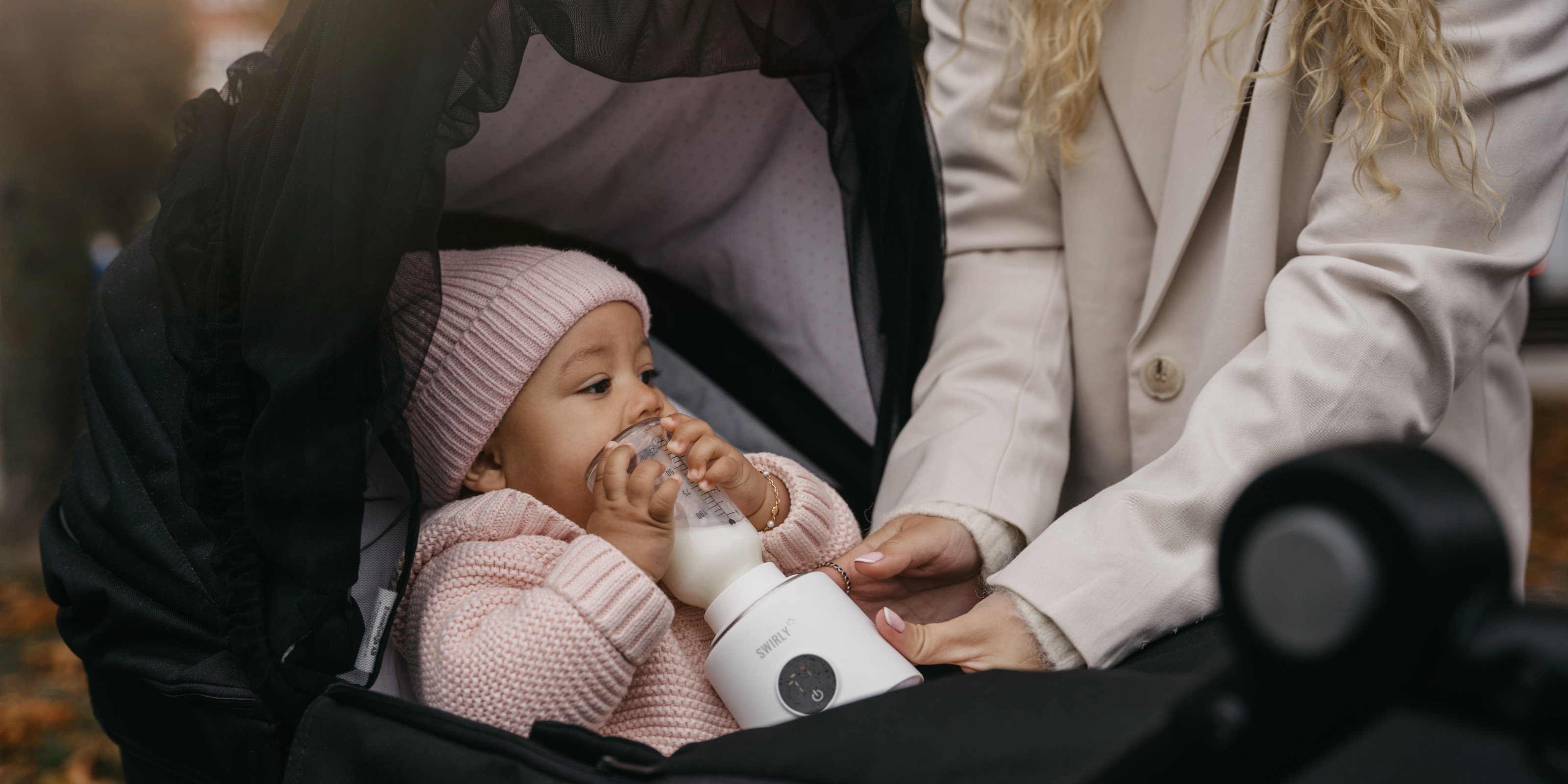 Varm din modermælk på farten. Bestil din Trådløse Flaskevarmer hos Swirly