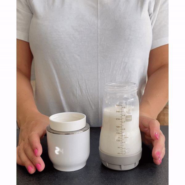 Alt du skal gøre er at fylde sutteflasken, montere den på Swirly flaskevarmeren og tænde. Så har du hurtigt og nemt opvarmet mælk til din baby.