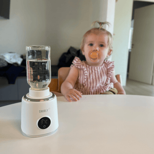 Alt du skal gøre er at fylde sutteflasken, montere den på Swirly flaskevarmeren og tænde. Så har du hurtigt og nemt opvarmet mælk til din baby.