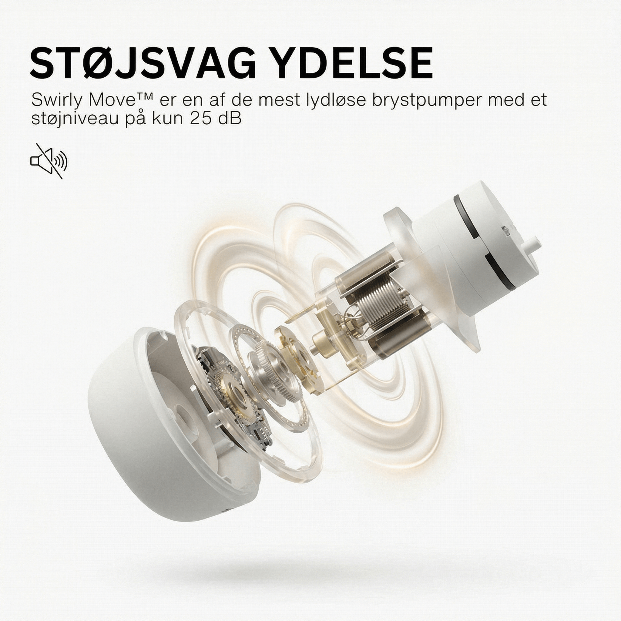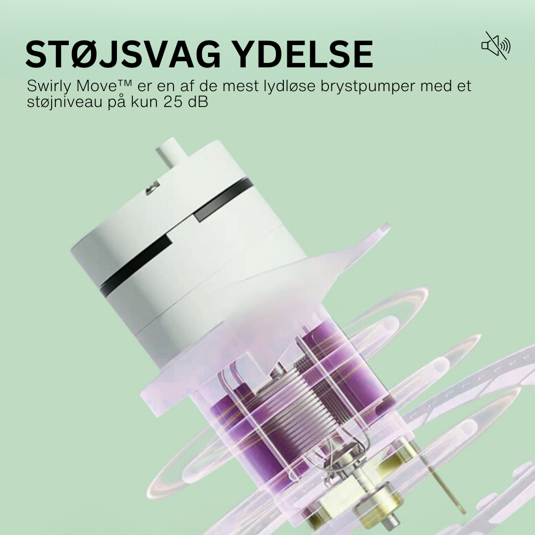 Den avancerede motor gør Swirly Move™ til en af de mest lydløse brystpumper på markedet, med et støjniveau så lavt som 25 dB. Perfekt til diskret pumpning uanset hvor du befinder dig.