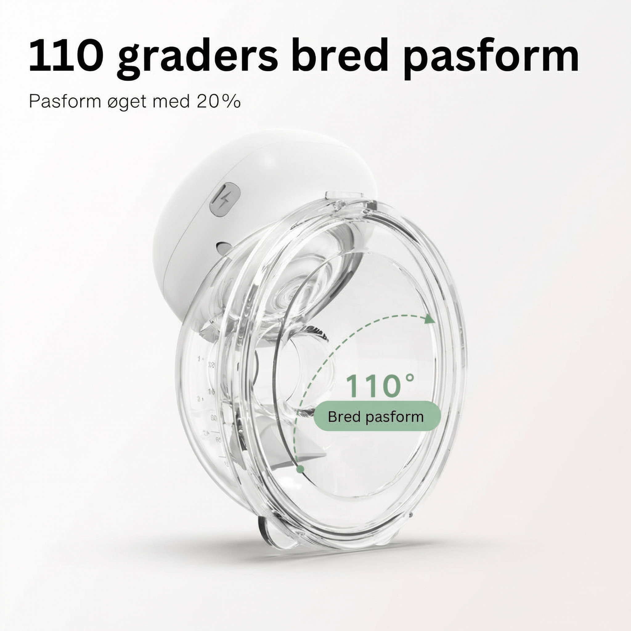 Den 110-graders brede vinkel passer til de fleste bryststørrelser, hvilket sikrer en behagelig og effektiv pumpning.